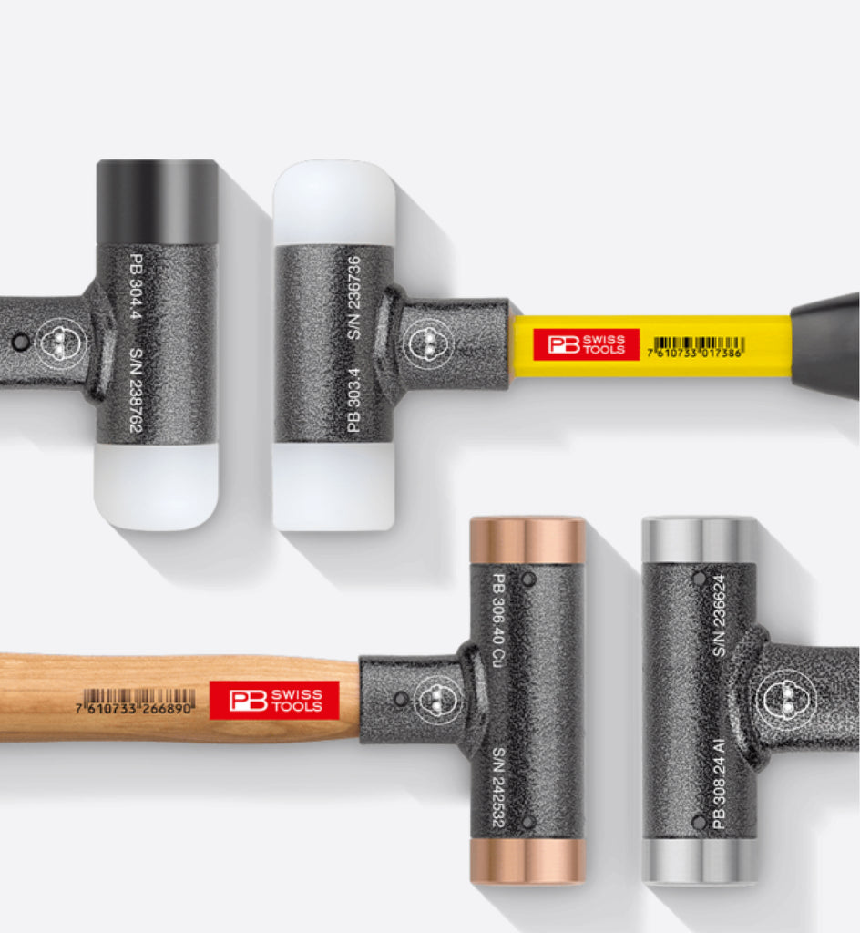 Dead-blow mallets have been around for a while, but using metal heads is a new innovation. Inside the head, a stack of discs effectively absorbs the impact of each mallet stroke, resulting in fatigue-free working. Experience the difference with just one blow.