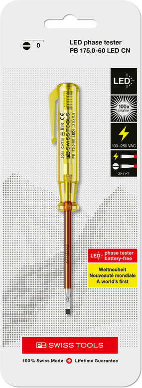 - 2-in-1: single-pole phase tester for displaying voltages, also a robust screwdriver