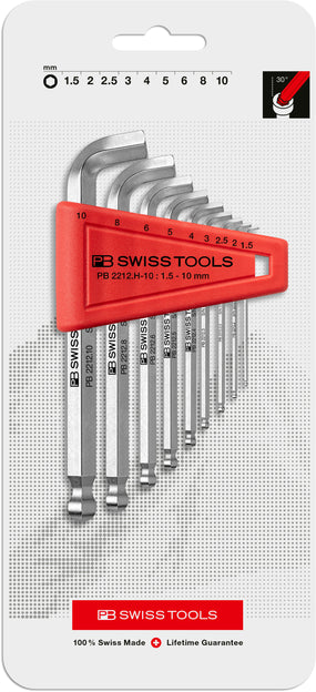 Key L-wrenches long, with ball point and short key part and 100° angle, set in a practical plastic holder