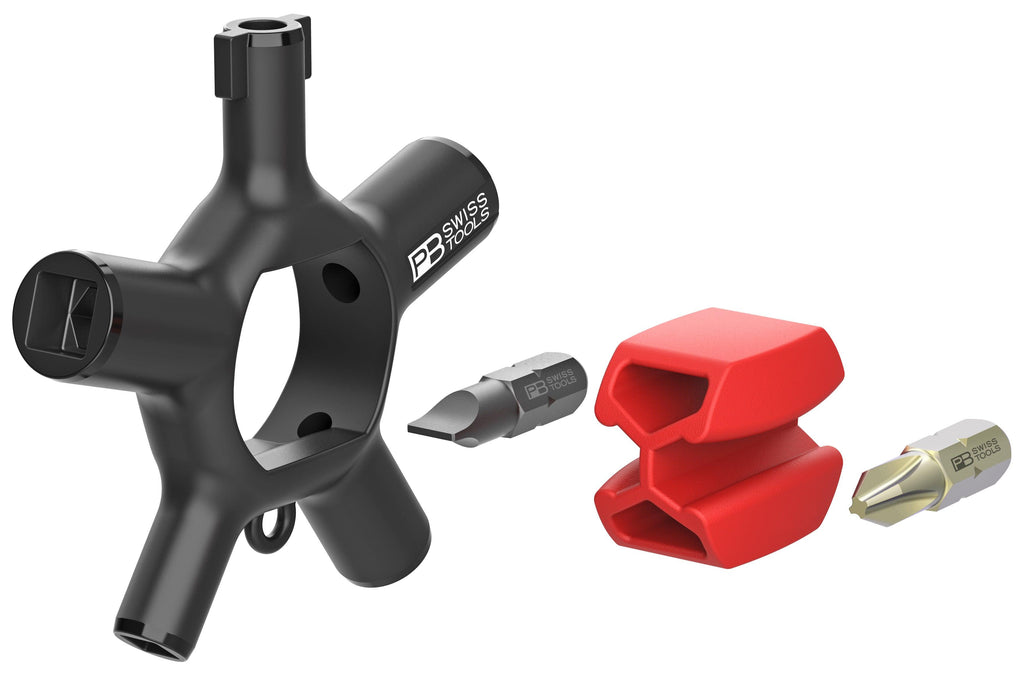 The PB 900.V01 CN is a high-quality 9-in-1 universal cabinet key designed for switchgear systems, barriers, and building technology services. Built for professionals, this compact tool combines square, triangular, double-bit, slotted, and Phillips screw compatibility in a single, pocket-sized design.