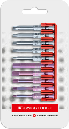 PrecisionBit, shape E 6.3 (1/4”), set of 10 with a handy BitBlock, skin pack