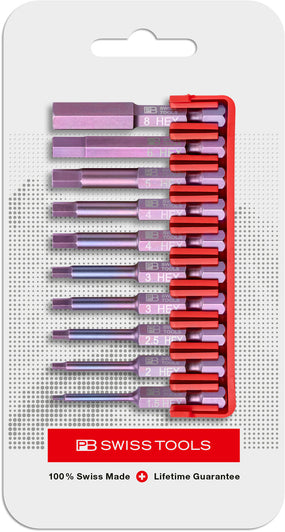PrecisionBit, shape E 6.3 (1/4”), set of 10 with a handy BitBlock, skin pack